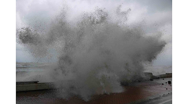 Fırtınanın etkili olduğu Karadeniz'de boyu 8-9 metreyi bulan dev dalgalar oluştu. Dalgalar sahili taş doldurdu, çevreye zarar verdi.