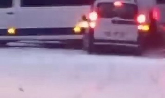 Kaza, Beyzade Efendi Bulvarı'nda meydana geldi. Edinilen bilgiye göre, sürücüleri ve plakaları öğrenilemeyen hafif ticari araç, kayganlaşan yolda duramayarak minibüse çarptı. Kazada yaralanan olmazken araçlarda maddi hasar meydana geldi. O anlar bir vatandaşın cep telefonu kamerasına yansıdı.