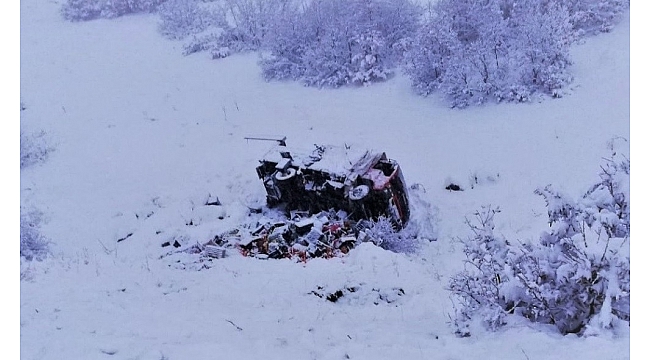 Elazığ ile Bingöl arasında karlı yoldan çıkan kamyonet şarampole devrildi, sürücü yaralandı.
