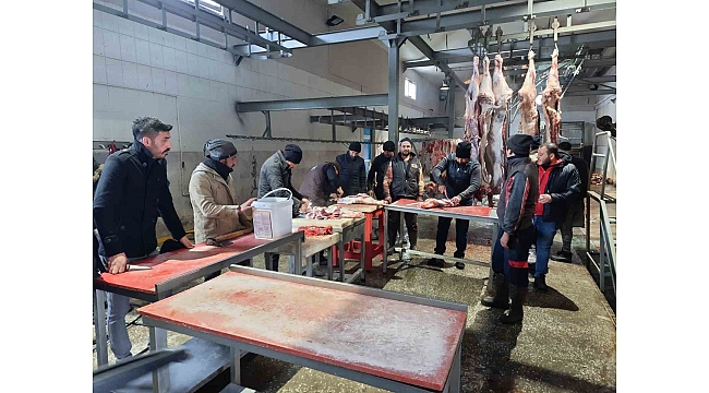 Afyonkarahisar'ın Sandıklı ilçesinde kasap esnafı tarafından bağışlanan büyükbaş ve küçükbaş hayvanlar, mezbahalarda tüm esnaf tarafından kesilip, parçalanıp deprem bölgesine gönderiliyor.