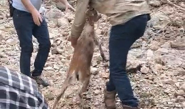 Elazığ'da yaralanan ve bitkin düşen yavru dağ keçisi, mahsur kaldığı kayalıklardan kurtarılmak istenirken korkarak suya atladı. Murat Nehri'nde bekleyen vatandaşlar tarafından keçi sudan çıkartılarak kurtarıldı.