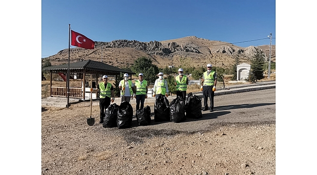Elazığ'ın Baskil İlçe Kaymakamı Mahmut Sami Yılmaz ve kaymakamlık personelleri, şehit Fethi Sekin'in kabri ve Hacı Hasan Baba türbesi etrafında temizlik çalışması gerçekleştirdi.