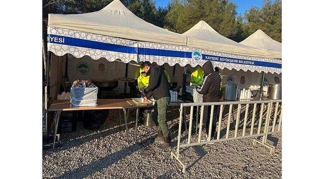 Kayseri Büyükşehir Belediyesi, Başkan Dr. Memduh Büyükkılıç'ın talimatları doğrultusunda deprem bölgesinde birlik, beraberlik ve dayanışma örneği göstererek, bölgede depremzedelerin sıcak yemek ihtiyacını da karşılıyor. Büyükşehir Belediyesi, Kahramanmaraş'ta ihtiyaç olan bölgelerde sabahın ilk ışıklarıyla birlikte sıcak çorba, öğle ve akşam yemekleri dağıtıyor.
