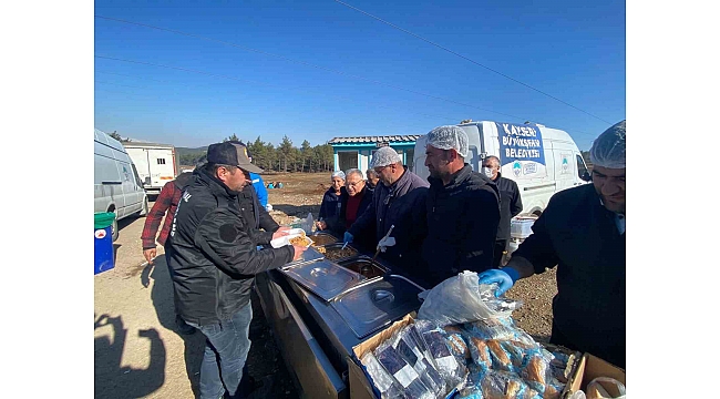 Depremin ilk anlarından itibaren, başta arama kurtarma çalışmaları olmak üzere altyapı faaliyetleri, temizlik, barınma ve lojistik ile birlikte gıda, giysi ve diğer malzeme desteklerini bölgeye ivedilikle ulaştıran büyükşehir belediyesi, depremin yaralarını sarmaya devam ediyor. Bu çerçevede Kayseri Büyükşehir Belediyesi, Kahramanmaraş'ta kurduğu yemek standında bölgedekilere her gün sıcak yemek imkânı sunuyor. Üzerinden bir haftadan fazla zaman geçen ve yüzyılın felaketi olarak nitelendirilen depremde bölgedeki depremzedelere ve görevlilere içlerini ısıtacak sıcak yemek hizmetini halen sürdüren büyükşehir belediyesi, çeşitli yemekleri ile desteğini aralıksız gerçekleştiriyor. Zaman zaman Kayseri Büyükşehir Belediye Başkanı Dr. Memduh Büyükkılıç'ın da bölgeye giderek kendi elleri ile bölgedeki depremzede vatandaşlar ile görevlilere sıcak yemek dağıttığı hizmette, bölgedeki vatandaşlar da Büyükkılıç'a teşekkürlerini iletiyor.