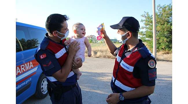 Elazığ'da iki aracın karıştığı kazada 9 aylık minik Zeynep'in annesi yaralanınca, jandarma ekipleri bebekle ilgilenip oyun oynadı.
