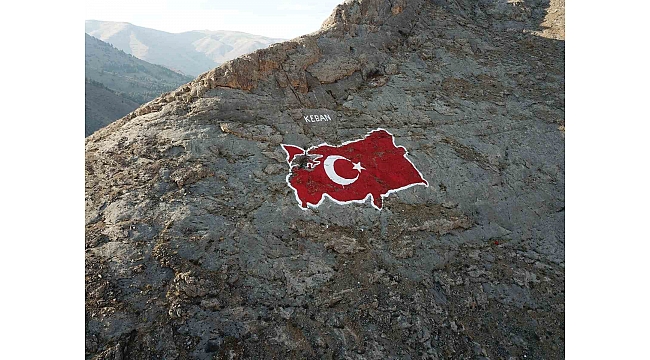 Elazığ'ın Keban ilçesi içerisinde yer alan Kıjkıjık Dağı'nın kayalığı üzerine, ressam Abdullah Bulut tarafından 400 metrekare büyüklüğünde çizilen ay yıldızlı Türkiye haritasının boyası yenilendi.