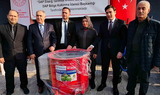 DAP Bölge Kalkınma İdaresi Başkanlığının desteğiyle Tarım ve Orman İl Müdürlüğü tarafından yürütülen DAP Elazığ Tarımsal Üretim Geliştirme Projesi sürüyor. Proje kapsamında Keban ilçesinde düzenlenen törenle hak sahibi üreticilere 110 çapa makinesi, 60 badem silkeleme ve 60 adette ceviz soyma makinesi teslim edildi.