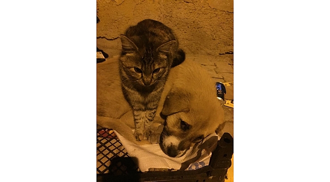 Elazığ merkeze bağlı Göl köyünde, kaldırımdaki köpek ve kedinin dostluğu görenlerin dikkatini çekiyor. Kedinin, köpeğin üzerine çıkıp yatması çevredekiler tarafından cep telefonu kamerasıyla kaydedildi. Havaların soğuması ile birlikte birbirlerine sokularak ısınan iki hayvanın dostluğu herkese örnek oldu.