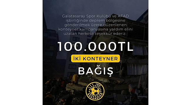 Kahramanmaraş merkezli gerçekleşen ve 10 ilde hissedilen depremler sonrasında spor camiasından da bölgeye destekler sürüyor. Edirne temsilcisi Keşanspor da depremzedeler için topladıkları 100 bin TL'yi Galatasaray ve AFAD iş birliğindeki yaşam konteyneri kampanyasına yatırdıklarını duyurdu. Kulübün sosyal medya hesabından konuyla ilgili yapılan açıklamada, "Galatasaray ve AFAD iş birliğindeki yaşam konteyneri kampanyasına destek veren hayırsever bağışçılarımıza teşekkürler. Yardımlarınız yerine ulaştı. Bugün 100 bin TL'nin banka havalesini gerçekleştirdik. Birlikte başaracağız, bu zor günleri aşacağız" denildi.