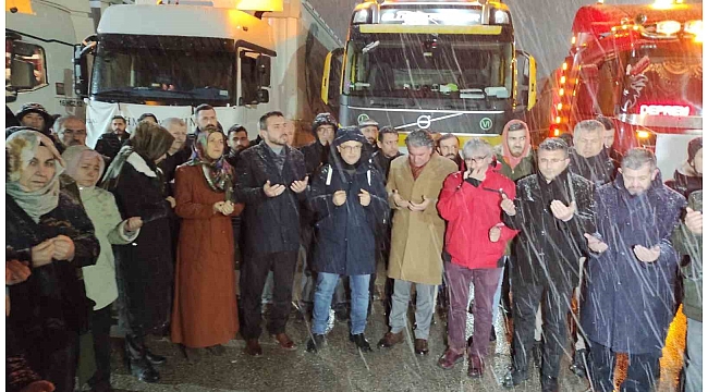 Depremin ilk 48 saatinde bölgeye ulaştırılması için yola çıkan tırlarda, battaniye, kışlık kıyafet, kuru gıda, bebek bezi, bebek maması, soba, ısıtıcı su gibi temel ihtiyaç malzemeleri yer alıyor.