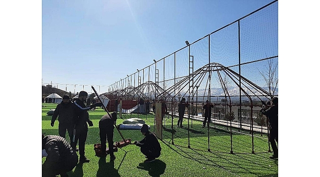 Kahramanmaraş merkezli depremlerin ardından Kırgızistan'ın Türkiye'deki depremzedeler için gönderdiği 127 adet kıl çadır Kahramanmaraş'ta kurulmaya başlandı.