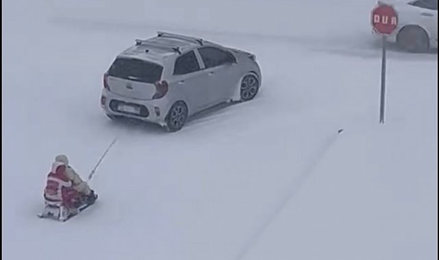 Elazığ'da kar yağışı aralıksız sürüyor. Birçok noktada hayat durma noktasına gelse de bazı vatandaşlar bunu eğlenceli duruma getirdi. Bir kızak aracın arkasına bağlanarak çekildi. Üzerindeki 2 kişi ise kayarak eğlendi. Trafikteki tehlikeli eğlence kameralara yansıdı.