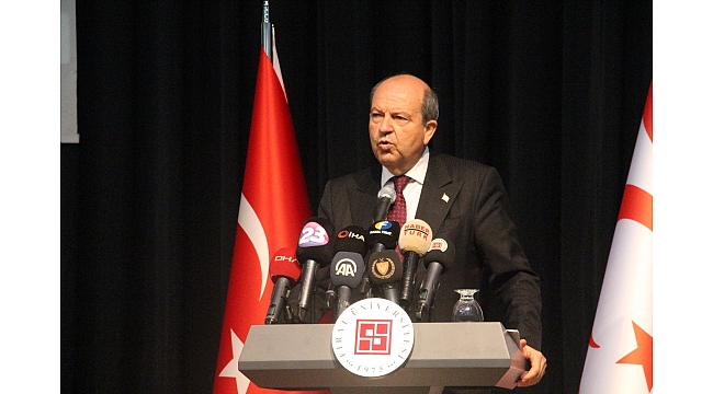 Egemenliği kabul ettirememeleri durumunda uzun vadede aynı tehlikelerin beklediğini vurgulayan KKTC Cumhurbaşkanı Tatar, "Yıllardır federasyon görüşmeleri içerisinde niyet edilen tek egemenlik çatısı altında bizleri bir bakıma Rum'a yama yapmaktır. Biz buna hiçbir zaman müsaade etmeyiz. Büyük Türk milletinin Kıbrıs'ta yaşayan uzantısı , Kıbrıs Türkleri olarak 85 milyon bugündür. Yarın 90 inşallah 15 sene sonra 100 milyonla büyük Türkiye Cumhuriyeti'dir. Hava temiz olduğunda net olarak Torosları görebiliyorsunuz. O kadar yakın. Anamur'dan bugün asrın projesi olarak su götürülmüştür. O kadar yakın bağlar var. Doğu Akdeniz'de yaşanan gelişmeler, enerji kaynakları bakımından, stratejik olarak gerek mavi vatandan gerek hava sahasından Libya'ya kadar uzanan bu bölgenin stratejik önemine baktığımız da Türk hükümeti Cumhurbaşkanı Recep Tayyip Erdoğan'ın da söyledikleri ve duruş bundan sonra bizim politikamız Kıbrıs'ta egemenliğimizin devamıdır" dedi.