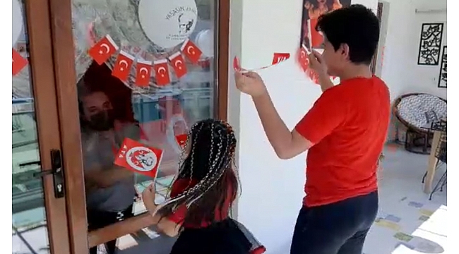 Elazığ'da iki kardeş, korana virüse (Covid-19) yakalanan ve ayrı bir odada karantinada olan babaları ile 23 Nisan'ı balkonda camın karşısında kutladı.