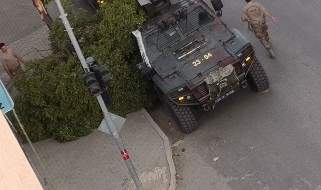 Elazığ'ın Kovancılar ilçesinde etkili olan fırtına nedeniyle ağaç dalları kırıldı. Kırılan ağaç dallarında bir tanesi askeri aracın üzerine düştü.