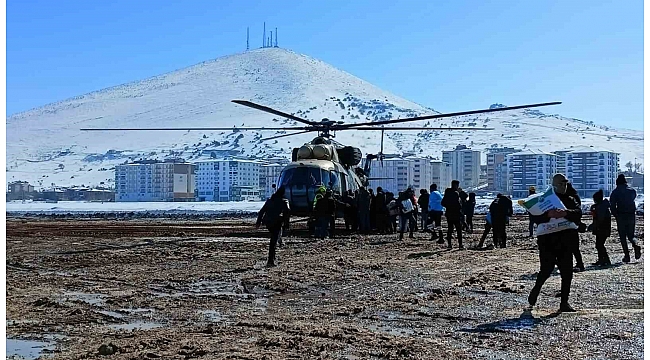 Kahramanmaraş'ta bir taraftan çöken binalarda çalışmalar sürerken, bir taraftan da her türlü imkan kullanılarak ihtiyaç malzemesi desteği sağlanıyor. Askeri helikopterlere yüklenen malzemeler, köylerdeki vatandaşlara ulaştırılıyor.