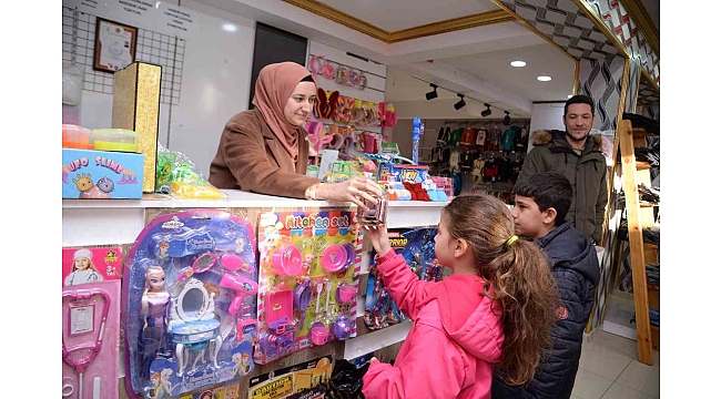 Berat ve Defne yaptıkları alışveriş sonrası aldıkları kıyafetleri depremzedelere ulaştırmak üzere Kahramankazan Belediyesi yetkililerine teslim ettiler.