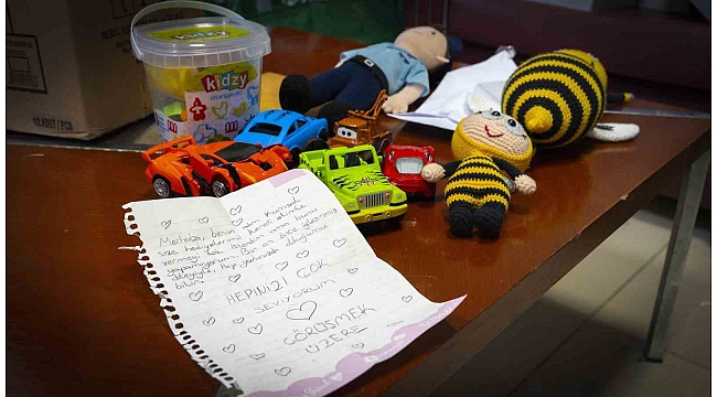 Mersinliler tarafından gönderilen yardım malzemelerin arasından çıkan bir mektup ise ekiplerin içini ısıttı. Oyuncaklarını depremzede yaşıtlarına gönderen Kumsal isimli kız çocuğu mektubunda şu ifadelere yer verdi: "Merhaba; benim adım Kumsal. Size hediyelerimi kendi elimle vermeyi çok isterdim. Ama bunu yapamıyorum. Bir an önce iyileşmeniz dileğiyle. Hep yanınızda olduğumu bilin, hepinizi çok seviyorum. Görüşmek üzere."