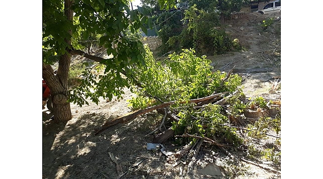 Elazığ'ın Keban ilçesinde etkili olan kuvvetli rüzgar, elma bahçelerine zarar verdi.