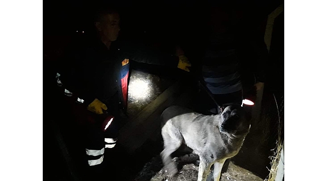 Kuyuya düşen köpek ve yavrusunu itfaiye ekipleri kurtardı