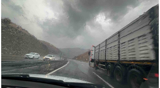 Elazığ'ın Maden ilçesinde etkili olan sağanak yağış, sürücülere zor anlar yaşattı.
