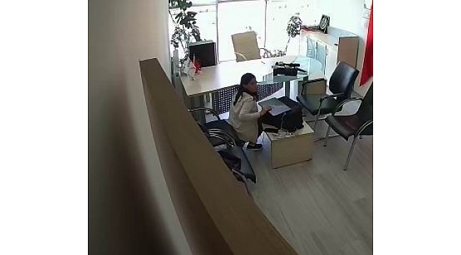 Elazığ'da hissedilen depreme büroda yakalanan bir vatandaşın, masa altına saklandığı görüldü.