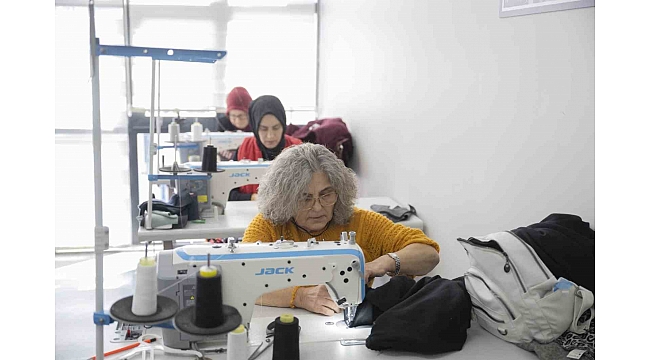 Mersin Büyükşehir Belediyesine bağlı MERCEK'te daha önce dikiş dikmeyi öğrenen kursiyerler, şimdi depremzedeler için durmaksızın üretmeye başladı.
