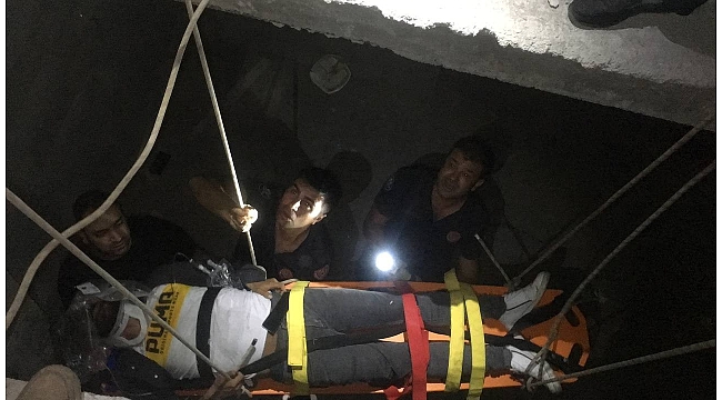 Elazığ'da inşaat halindeki binaya giren ve merdiven boşluğuna düşerek yaralanan şahıs, sağlık ve itfaiye ekiplerinin uzun uğraşları sonucu sedyeyle halat yardımıyla kurtarıldı.