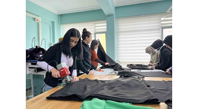 Yaşanan deprem felaketi sonrasında depremzedeler için battaniye ve şal gibi sıcak tutacak ürünler ürettiklerini belirten 11'inci sınıf moda tasarımı öğrencisi Halime Durak, "Deprem çok acı. Bizim buradan canımız parçalanıyor, kendimizi onların yerlerine koyuyoruz. Okulumuzda battaniye, eşofman takımı ve pançolar yapıyoruz. Isınmaları için elimizden geleni yapıyoruz. Yaklaşık 3-4 gündür buradayız. Sabahtan akşama kadar burada çalışıyoruz. Günlük 20-30 tane arasında üretim yapıyorum" şeklinde konuştu.