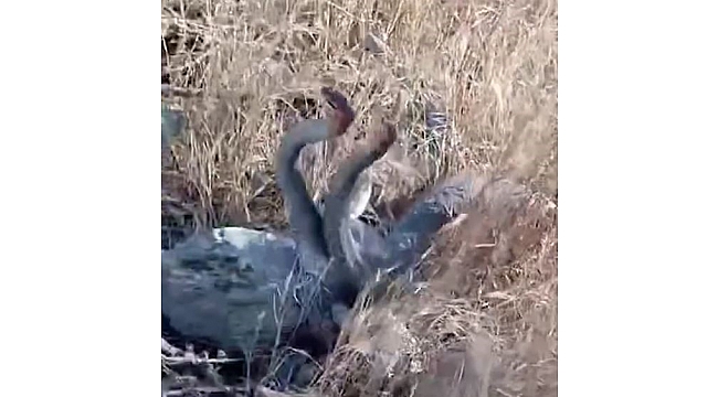 Elazığ'da yaklaşık 2 metre uzunluğundaki iki yılanın çiftleşme dansı cep telefonu kamerasına yansıdı.