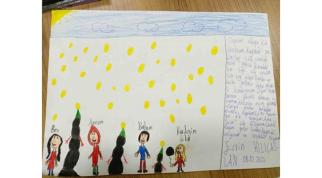 Kayseri Büyükşehir Belediyesi, Kahramanmaraş'ta gerçekleşen ve aralarında Kayseri'yi de etkileyen deprem sürecinde kentteki vatandaşlara 7/24 hizmet gerçekleştirirken, KAYMEK Akademi'de kalan Minik Ecrin de, Büyükşehir Belediyesi'ne duygu dolu bir teşekkür yazısı yazdı.
