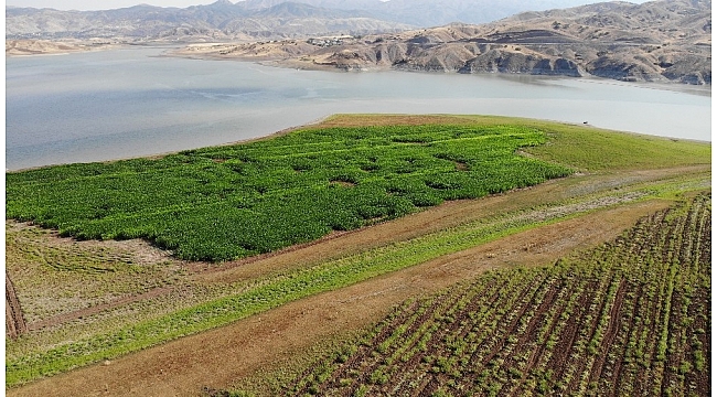 Elazığ'da Murat Nehri'nde suyun yaklaşık 2 kilometre çekilmesiyle çiftçiler, ortaya çıkan araziyi değerlendirerek mısır ve bostan ekerek tarıma başladı.