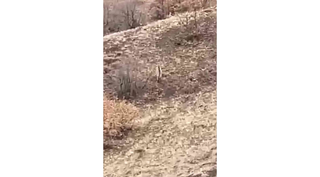 Dünyada nesli tükenme tehlikesi ile karşı karşıya olan çizgili sırtlan, Elazığ'da bir çoban tarafından görüntülendi.
