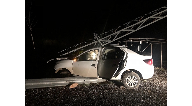 Elazığ'da otomobilin çarptığı aydınlatma direği, aracın üzerine devirdi, sürücü yaralandı.