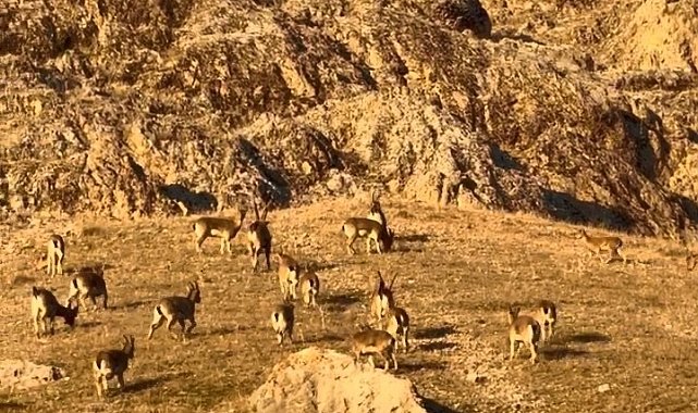 Nesli tükenme tehdidi altında bulunan ve avlanması yasaklanan dağ keçileri, tarihi Palu Kalesi'nde görüntülendi. Bölgeyi gezen vatandaşlar, kalenin alt kısımlarında dolaşan dağ keçilerini cep telefonuyla kayıt altına aldı. Dağ keçileri bir süre sonra gözden kayboldu.