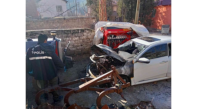 Elazığ'ın Keban ilçesinde park halindeyken alev alan otomobil, ekiplerin müdahalesi ile söndürüldü. Yangın sonrası otomobil, kullanılamaz hale geldi.