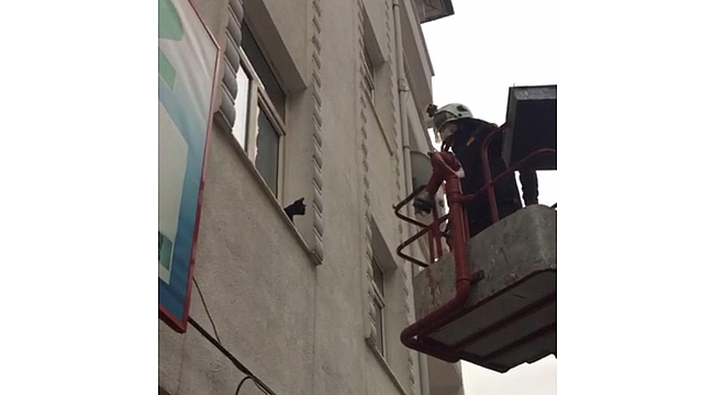 Elazığ'da bir dairenin penceresi önünde mahsur kalan kedi, itfaiye ekipleri tarafından kurtarıldı.