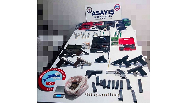 Elazığ'da polisi gören ve kaçmaya başlayan şüpheli, yaşanan kovalamaca sonrası yakalandı. Üzerinde ve iş yerinde çok sayıda silah ve uyuşturucu madde çıkan şüpheli tutuklanarak cezaevine gönderildi.