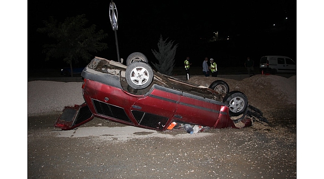 Elazığ'da refüje çarparak takla atan otomobilin sürücüsü yaralı kurtuldu.