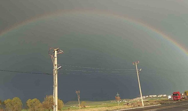 Elazığ'ın Karakoçan ilçesinde etkili olan sağanak sonrası ortaya çıkan gökkuşağı, görenleri hayran bıraktı.