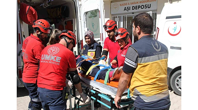 Elazığ'da gerçekleştirilen deprem tatbikatında sağlık personelleri, bu kez yaralı arkadaşlarını kurtarmak için seferber oldu.