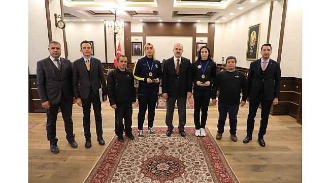 İzmir'de düzenlenen Türkiye Büyük Kadınlar Ferdi Boks Şampiyonasından altın madalyayla dönen Elazığlı boksörler Gizem Özer ve Mihriban Güneri, Elazığ Valisi Dr. Ömer Toraman'ı makamında ziyaret etti.