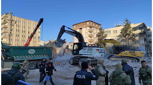Kahramanmaraş merkezli depremlerin ardından Şanlıurfa'da yıkılan binalarda enkaz kaldırma çalışmaları sürüyor. Enkaz kaldırma çalışmalarının sürdüğü Osman Ağan Apartmanı'nda ekipler, haber alamadığı 7 kişinin bulunması için arama çalışmalarına devam ediyor.