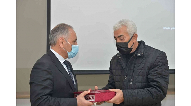 Programda Kur'an-ı Kerim tilavetinin ardından Milli Eğitim Müdürü Feyzi Gürtürk, Şehit Faruk Barut'un babasına Kur'an-ı Kerim ve Türk bayrağı armağan etti.
