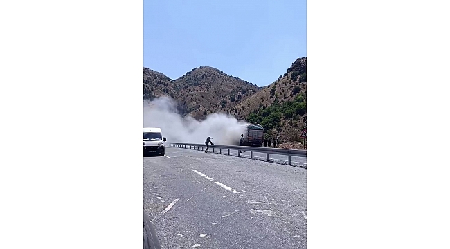 Elazığ'da seyir halindeki kamyondan çıkan duman paniğe neden oldu. Çevredeki vatandaşlarında müdahalesi ile yangının önüne geçildi.