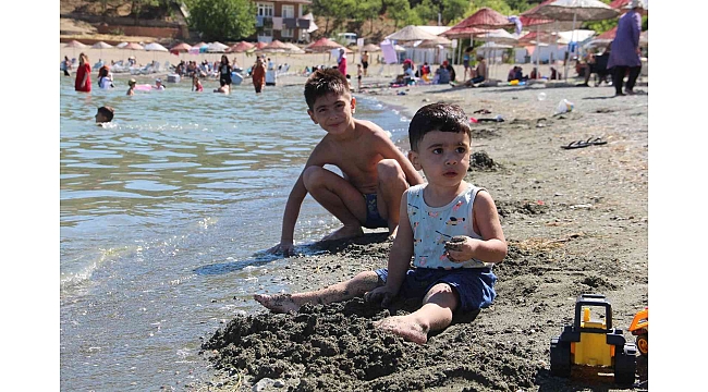 Elazığ'da sıcaklıkların mevsim normallerinin üzerinde seyretmesiyle hafta sonunu da fırsat bilen vatandaşlar, Hazar Gölü'ndeki plajlara akın etti.