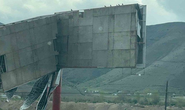 Meteorolojinin uyarısını yaptığı şiddetli rüzgar Elazığ'da etkili oldu. Bazı ilçelerde dolu yağışının da etkili olduğu kentte Kovancılar karayolu Çağlar mevkiinde bulunan dev reklam panosu da şiddetli rüzgardan nasibini aldı. Fırtına nedeni ile devrilen pano, kullanılamaz hale gelirken, bazı uyarı levhalarının da yerinden söküldüğü görüldü.