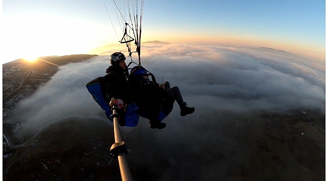 Elazığ'ın Sivrice ilçesinde sabahın erken saatlerinden itibaren etkili olan siste Hazar Gölü kayboldu. O anlar yamaç paraşütü pilotları tarafından havadan görüntülendi.
