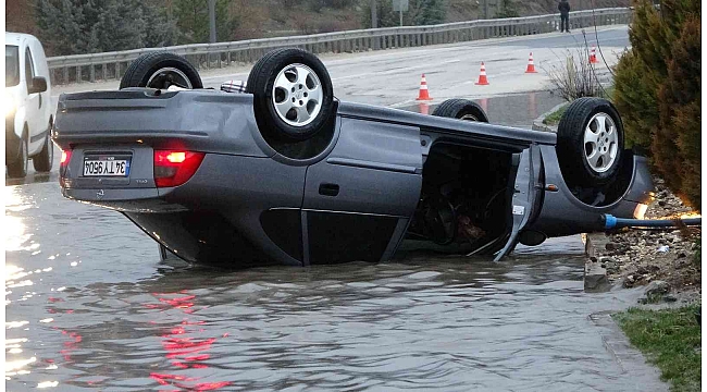 Elazığ'da su birikintisine giren otomobil takla attı. Kazada 3 kişi hafif yaralandı.
