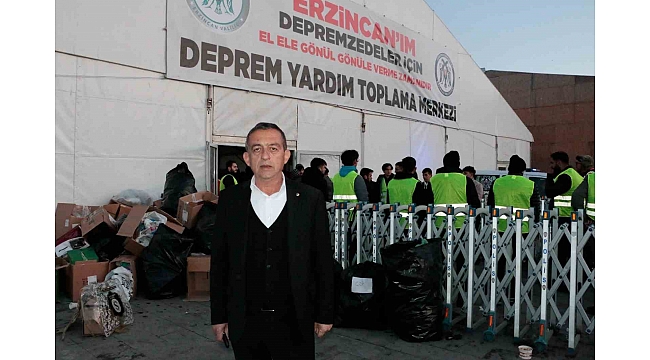 Erzincan Ticaret ve Sanayi Odası Yönetim Kurulu Başkanı Ahmet Tanoğlu, yardım malzemesi toplama merkezini ziyaret etti.